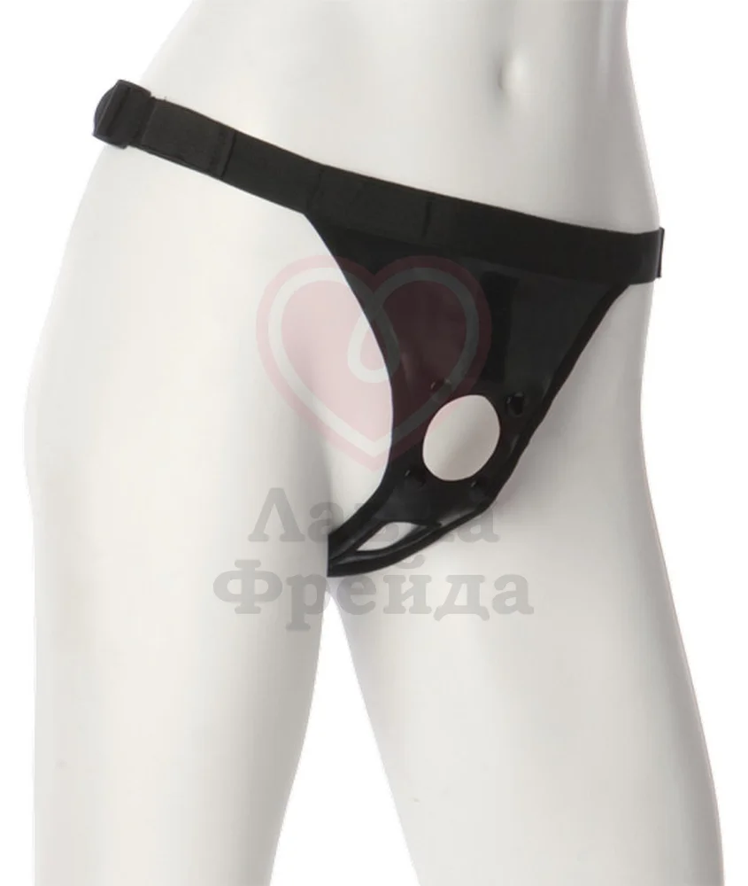 Трусики с отверстием для фиксации насадок-фаллоимитаторов с креплением Vac-U-Lock выполнены из тянущегося материала, который плотно прилегает к бёдрам. Ремешки позволяют регулировать размер, трусики подходят на талию от 50 до 133 см. Есть вырез в интимной зоне.