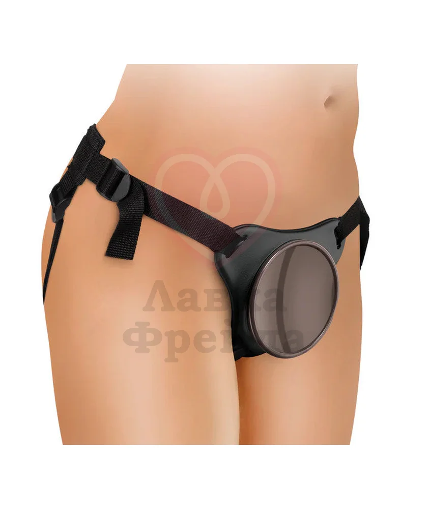 Трусики для страпона Body Dock Strap-On Harness созданы по новой технологии: здесь нет привычных креплений или колечек, только плоская база. Диаметр крепления 8,6 см, что позволяет использовать практически любую насадку с присоской на основании. База с насадкой закрепляется на привычных ремешках-трусиках и регулируется на талии в обхвате до 137 см.