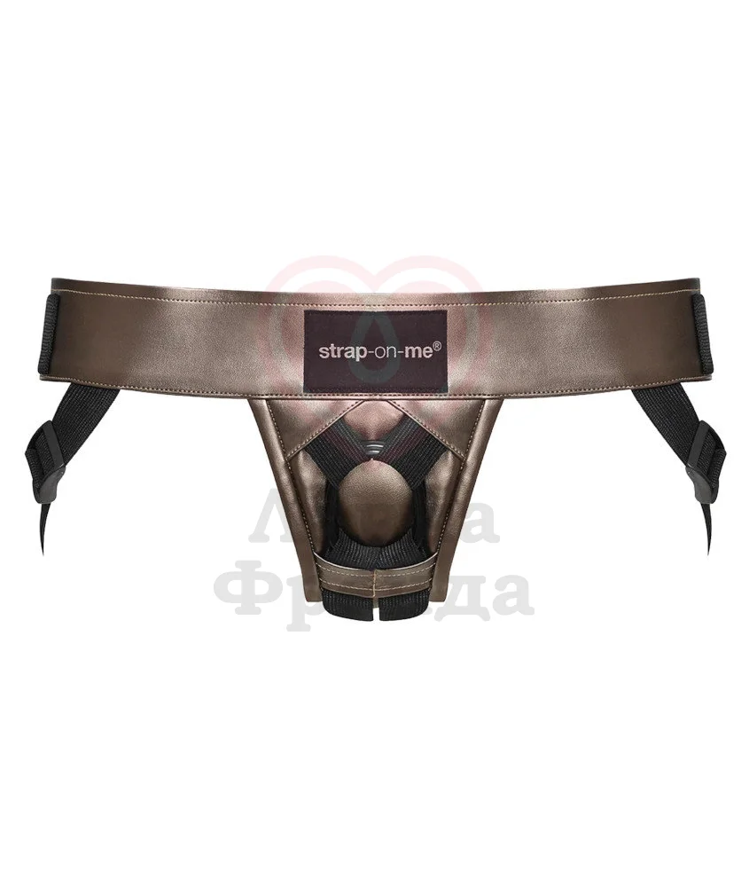 Трусики для страпона Strap-On-Me Curious Harness имеют широкий комфортный пояс и регулируемые ремешки для удобной посадки. Благодаря липучкам трусики имеют универсальный размер One Size и легко закрепляются на талии. Спереди расположено колечко из медицинского силикона, которое подойдет для большинства фаллоимитаторов с присоской на основании. Пояс имеет более мягкую спинку за счет небольшой прослойки внутреннего наполнителя.