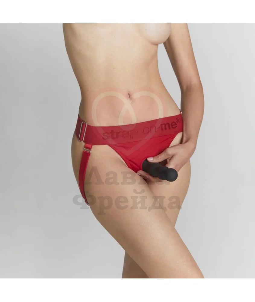 Трусики для страпона Strap-On-Me Lingerie Harness Unique — элегантное, эластичное и удобное белье с двумя колечками для насадок-фаллоимитаторов с присоской на основании. Спереди выглядят как классические трусики с эластичным поясом, а сзади — регулирующиеся ленты красиво очерчивают и выделяют ваши бедра. Белье плотно прилегает к телу и надежно поддерживает насадку для страпона при помощи скрытого под тканью колечка из медицинского силикона.