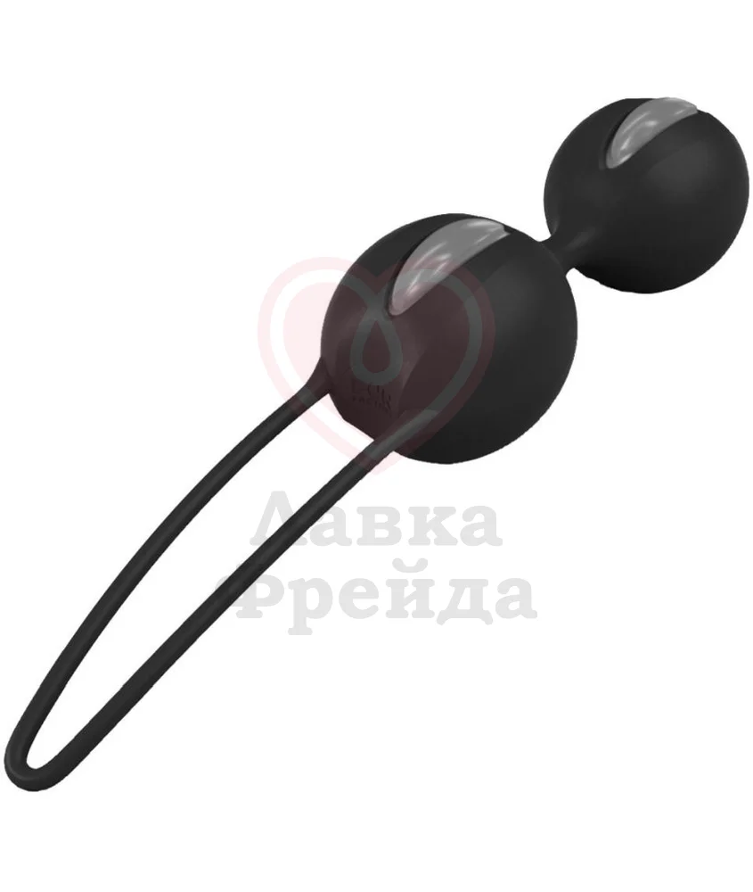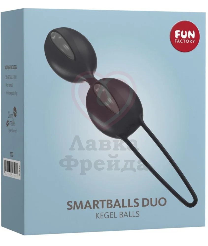 Fun Factory Smartballs Duo - это два рельефных шарика со смещенным центром тяжести, соединенные между собой гибкой перемычкой. Внутри спрятан тяжеленький металлический шарик, перекатывающийся при движении, что создает эффект вибрации. При этом мышцы малого таза начинают непроизвольно сокращаться, так как вы пытаетесь удержать подвижный шарик внутри. Именно за счет этого и происходит тренировка мышц.