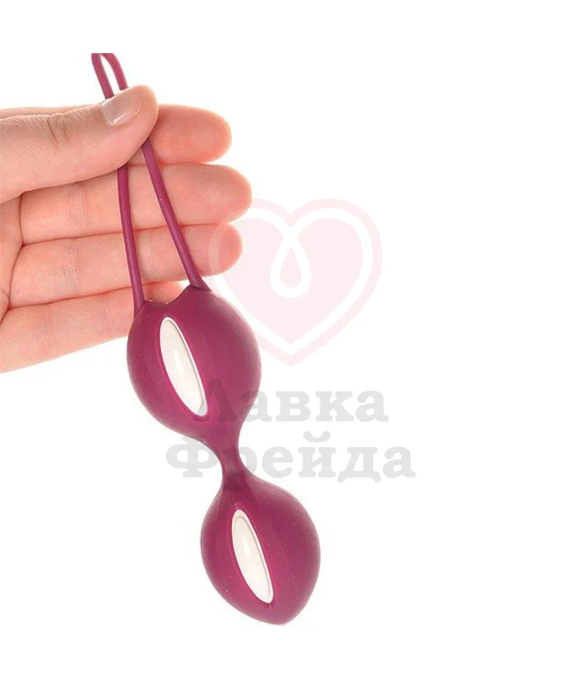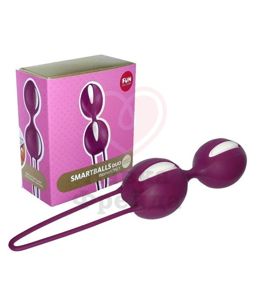 Fun Factory Smartballs Duo - это два рельефных шарика со смещенным центром тяжести, соединенные между собой гибкой перемычкой. Внутри спрятан тяжеленький металлический шарик, перекатывающийся при движении, что создает эффект вибрации. При этом мышцы малого таза начинают непроизвольно сокращаться, так как вы пытаетесь удержать подвижный шарик внутри. Именно за счет этого и происходит тренировка мышц.