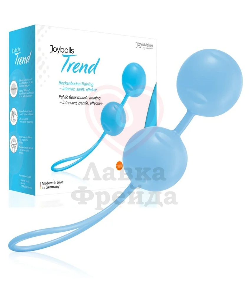 Вагинальные шарики Joyballs Trend матового голубого цвета – отличная возможность провести тренировку по укреплению мышц тазового дна. Два шарика диаметром 3,5 см, соединённые между собой, имеют удобную петельку длиной 8,5 см для того, чтобы девайс легко было использовать.