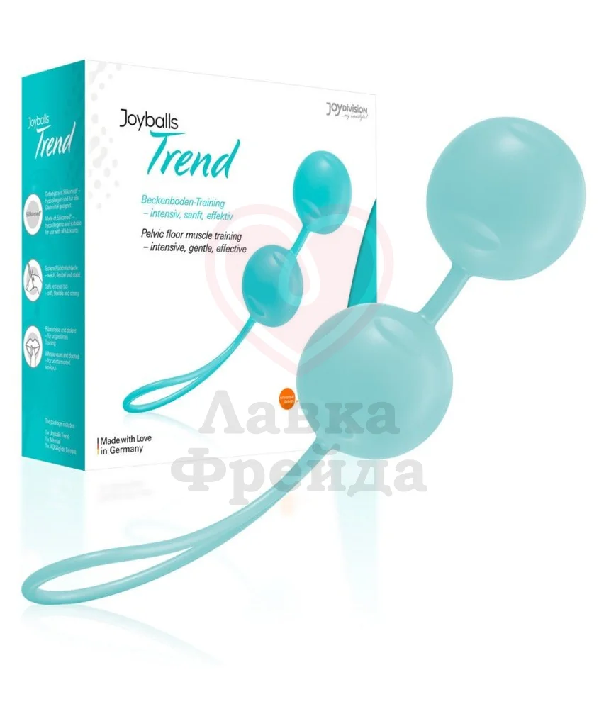 Вагинальные шарики Joyballs Trend матового мятного цвета – отличная возможность провести тренировку по укреплению мышц тазового дна. Два шарика диаметром 3,5 см, соединённые между собой, имеют удобную петельку длиной 8,5 см для того, чтобы девайс легко было использовать.