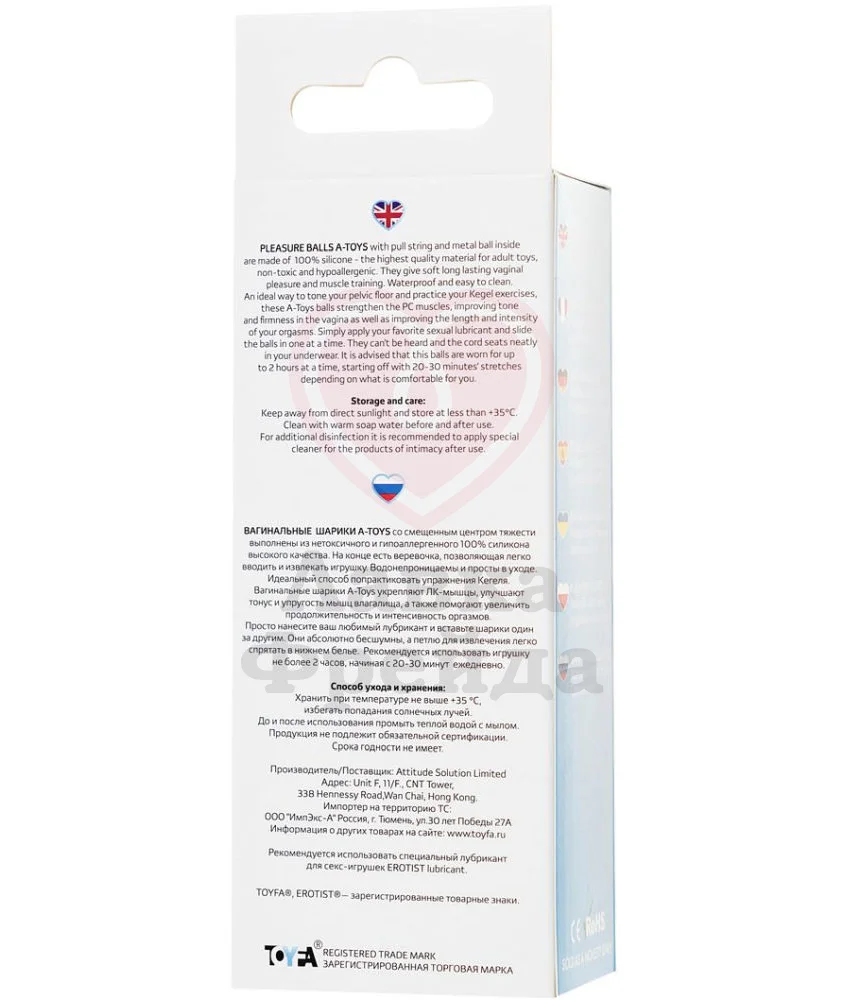 Регулярные тренировки с вагинальными шариками A-Toys by Toyfa Trot укрепят мышца тазового дна, сделают ткани более эластичными, а также повысят уровень чувствительности, положительно сказываясь на либидо. Внутри изделия находится подвижный элемент, который мягко перекатывается внутри, обеспечивая массажный эффект и большую результативность упражнений.