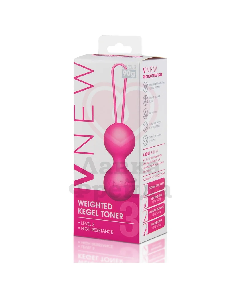 Утяжеленный вагинальный тренажер VNEW level 3 идеально подходит для уже натренированных вагинальных мышц. Шарики имеют вес 120 грамм, максимальный диаметр 3,5 см. Выполнены из безопасного приятного на ощупь бархатистого силикона яркого розового цвета. Внутри шариков расположен утяжелитель, который создает смещенный центр тяжести, дополняя ощущения приятной вибрацией.