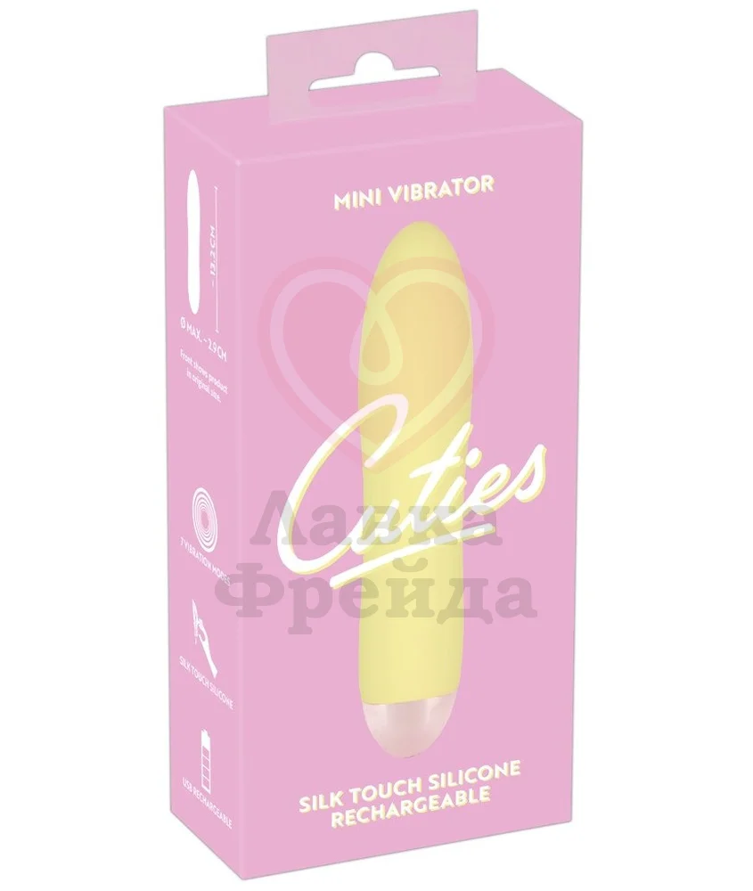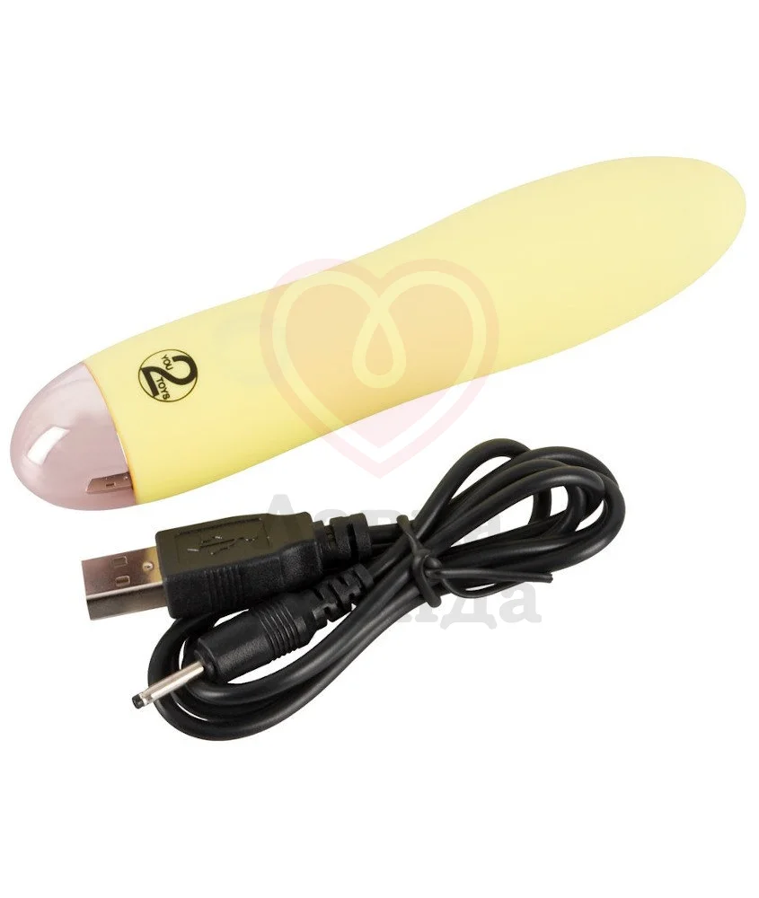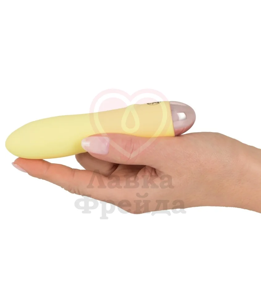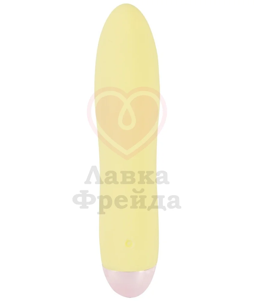 Вибратор из серии You2Toys Cuties имеет нежный пастельно-жёлтый цвет, компактный размер и удобную простую форму. Это небольшая по габаритам игрушка имеет длину проникновения всего лишь 8 см, её диаметр изменяется от 2,5 см до 3 см в самой широкой части — кончике.
