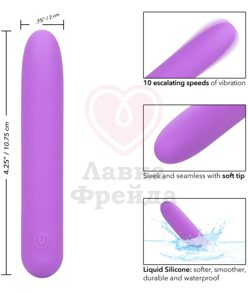 спреем для игрушек, либо мыть небольшим количеством теплой воды и мыла. Вибратор полностью водонепроницаем, но не используйте его в воде дольше 30 минут и не опускайте на глубину больше одного метра.