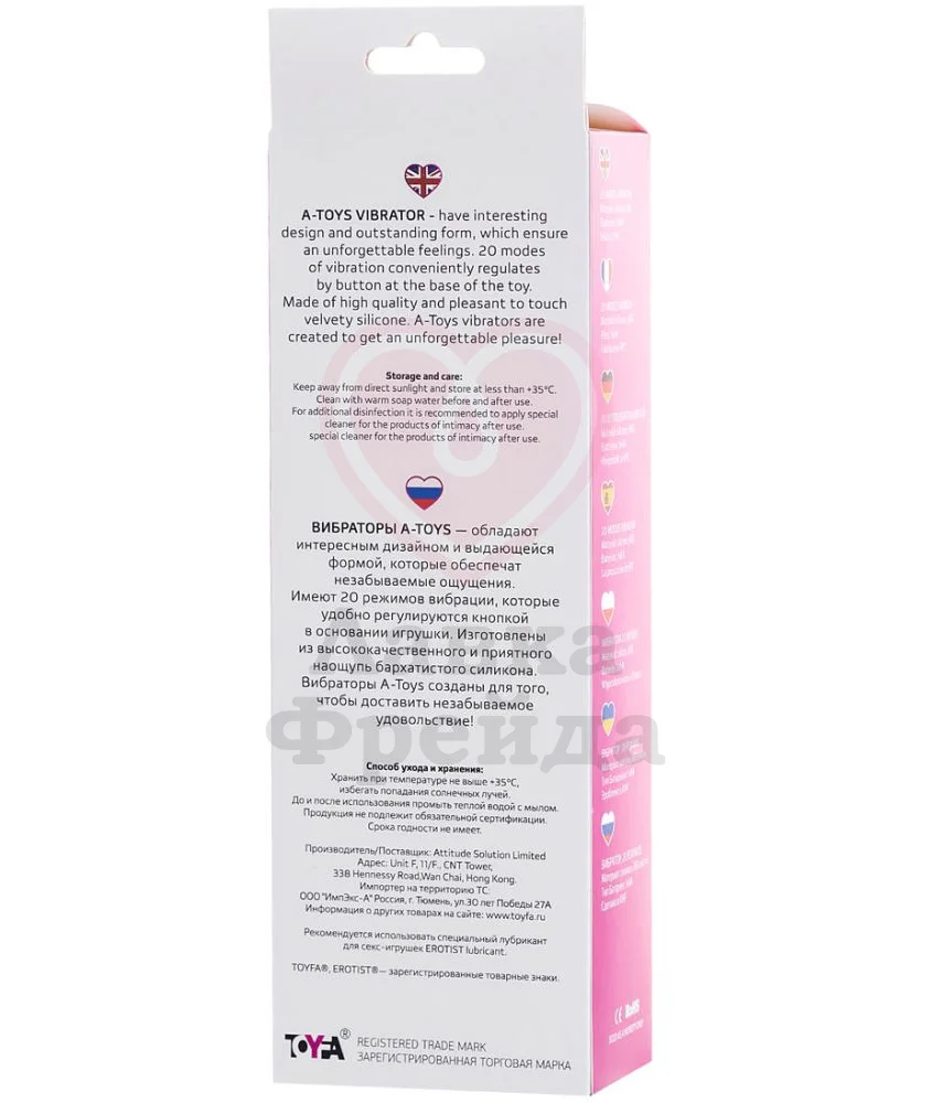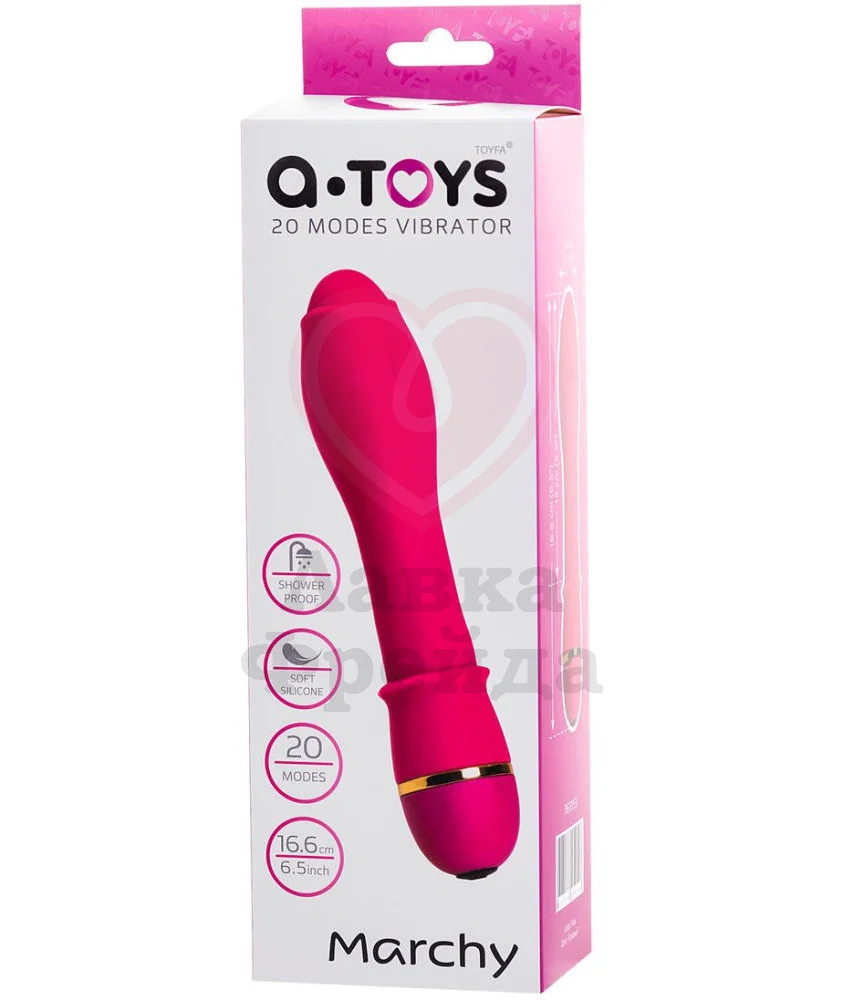 Вибратор A-Toys by Toyfa Marchy имеет объёмную головку с лёгким рельефом, которая усилит приятные ощущения от проникновения, подарив чувство наполненности. Мотор, работающий от одной батарейки типа AA, отвечает за работу 20 паттернов вибрации разной интенсивности, переключаемых одной кнопкой в основании девайса.