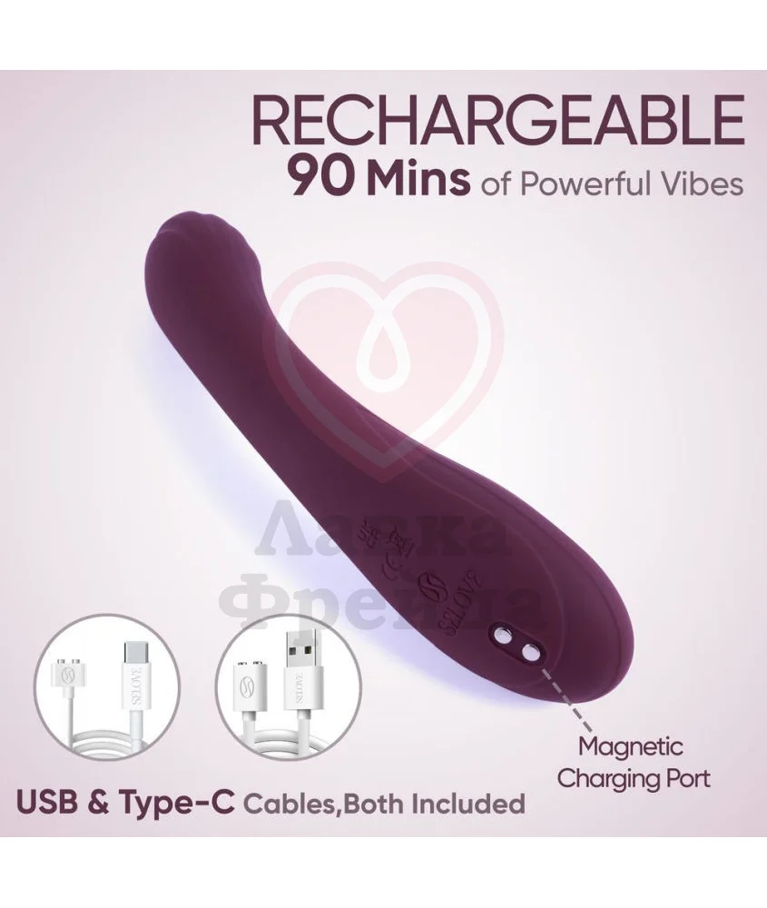 Вибратор Selove CurveRush повторяет индивидуальные изгибы тела, эффективно стимулируя внутренние эрогенные зоны. Мощный движок обеспечивает работу 7 вибро-режимов с 3 уровнями интенсивности, переключаемых кнопкой, расположенной в основании девайса. При полной зарядке через USB кабель вы получите до 1,5 часов непрерывных вибраций на самых высоких скоростях.