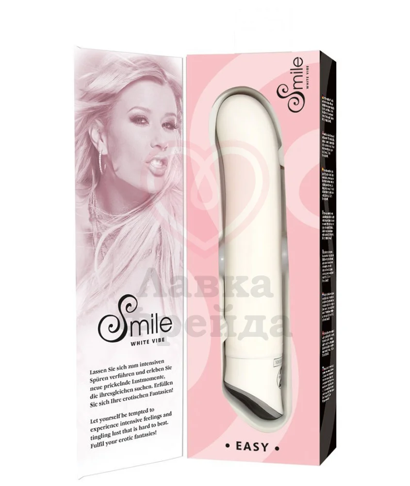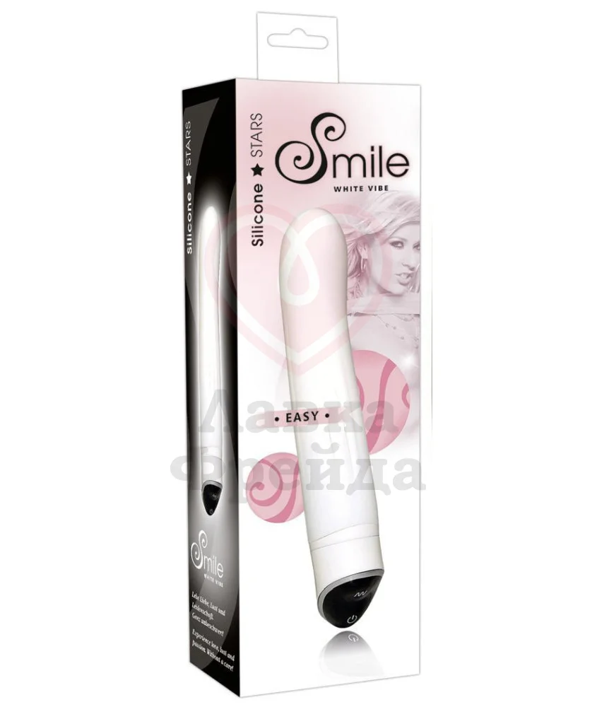 Вибратор Smile Easy анатомической формы обладает слегка загнутой головкой для более интенсивного воздействия на чувствительные точки. У него есть 7 режимов вибрации, которые обеспечивает мощный моторчик. Кнопки управления девайсом расположены на основании, а подзарядка ему не нужна – просто замените батарейки.