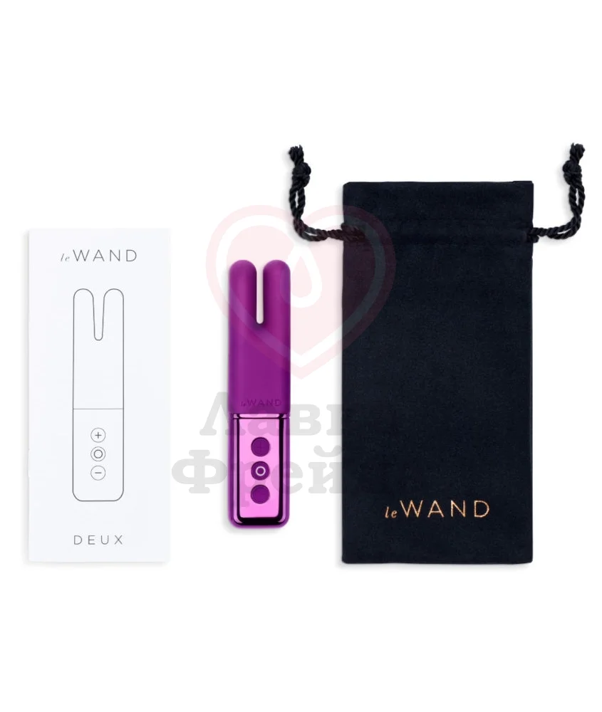 Le Wand Deux – миниатюрный и изящный девайс с двумя моторчиками, каждый из которых расположился в своём кончике вибратора. Сами Le Wand называют его «стерео-ощущения», потому что эффект двойной стимуляции для сосков, клитора и любой другой зоны, получается ещё более объёмным и действенным. Всего доступно 15 режимов и 6 интенсивностей вибрации.