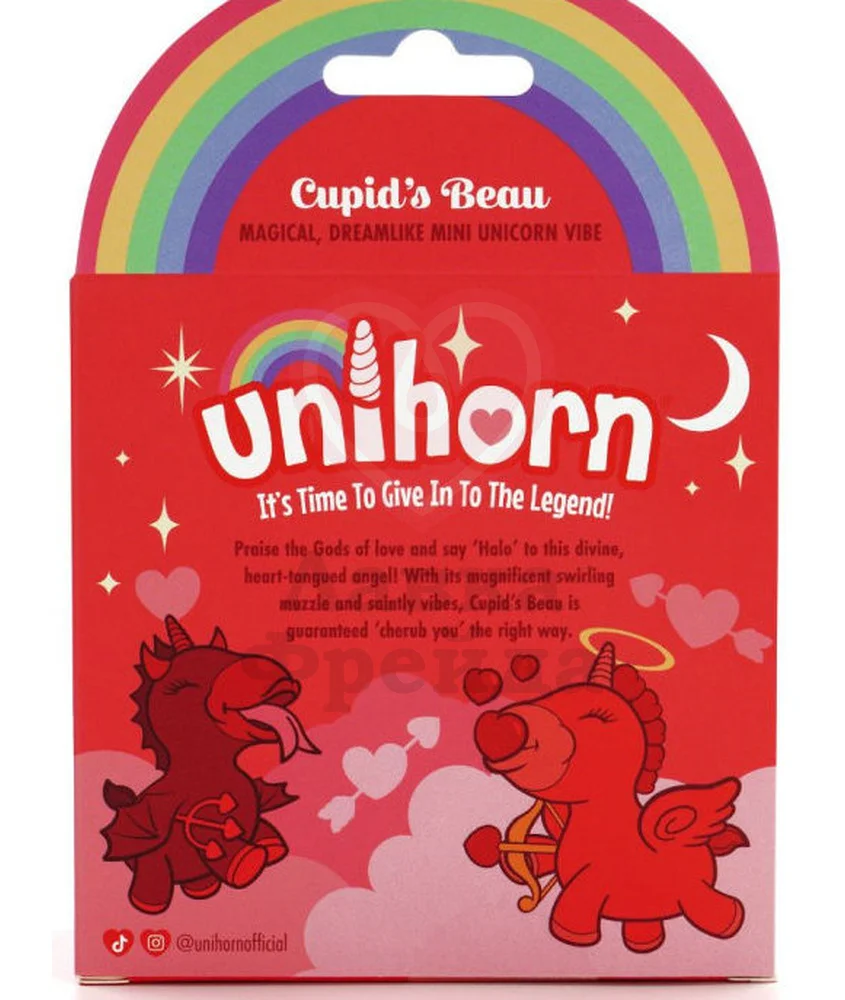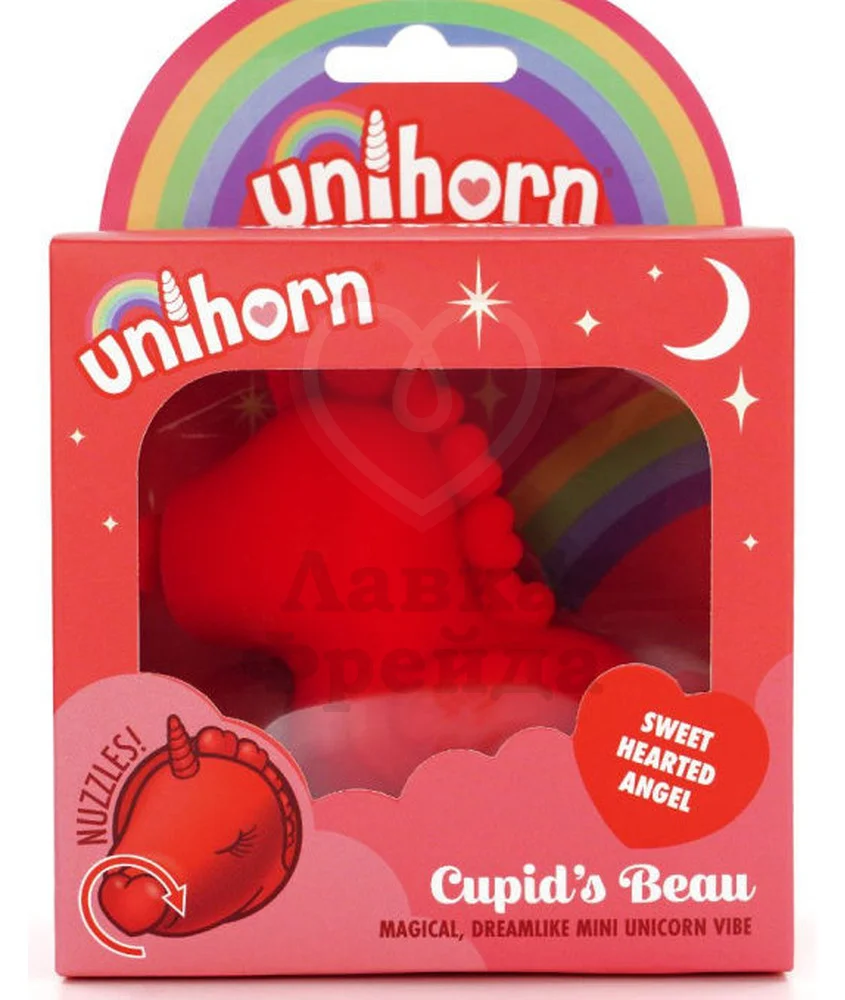 Вибратор Unihorn Cupid's Beau, сделанный в форме ярко-красного единорога, будет стимулировать клитор 10 вибро-режимами и 10 уровнями пульсации, за которые отвечает подвижный элемент в форме сердечка. Перезаряжается через магнитный USB - полная 2-х часовая зарядка подарит до 1 часа непрерывной работы устройства.
