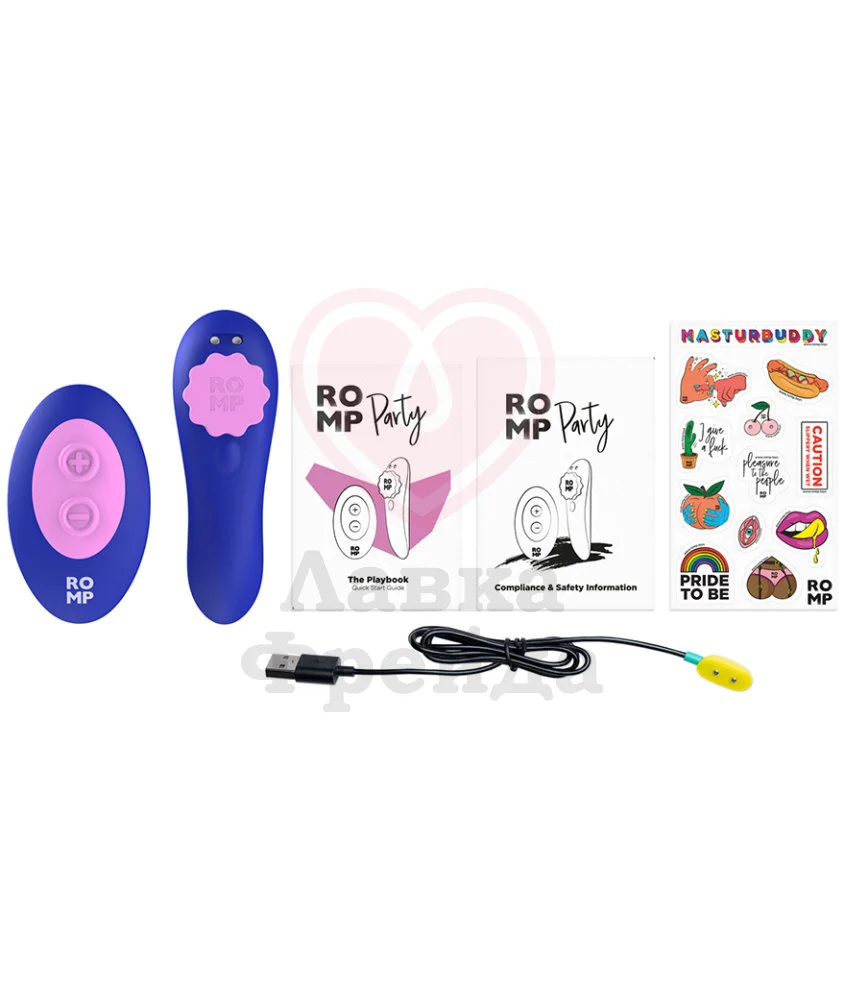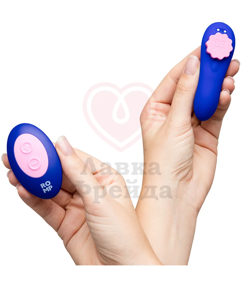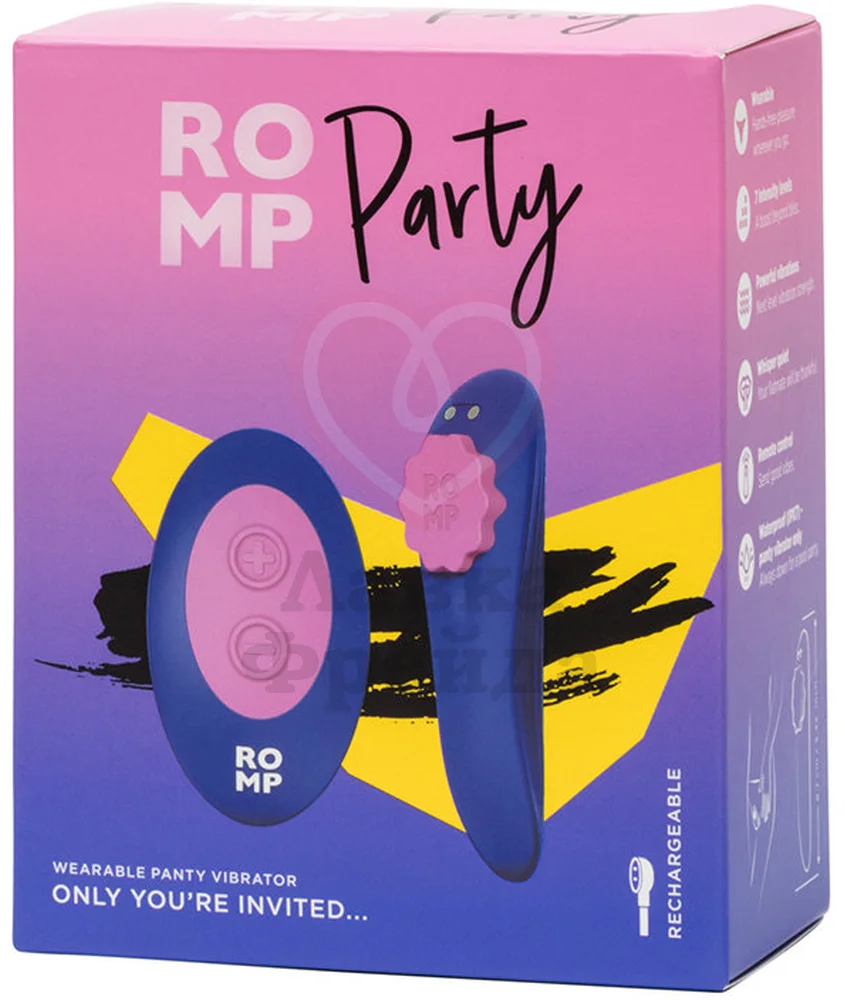 Вибратор Romp Party предназначен для точечной стимуляции клитора - он крепится на трусики с помощью небольшого магнита, а пультом дистанционного управления, с радиусом действия до 10 метров, вы сможете управлять своими оргазмами, переключаясь между 7 режимами вибрации.