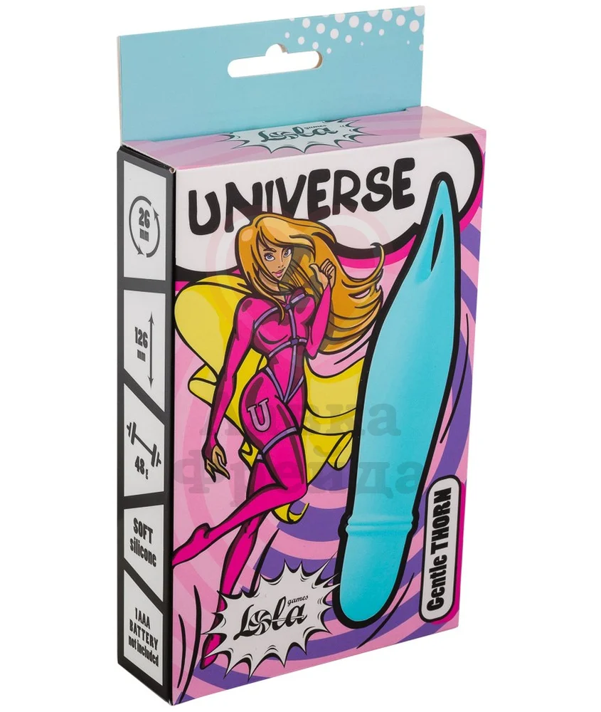 Мини-вибратор из серии Universe Gentle Thorn обладает ярким голубым цветом, компактными размерами и практичной формой с тонким кончиком для удобной стимуляции чувствительных мест: сосков, клитора и других эрогенных зон. Кончик имеет небольшое отверстие для более волнительной вибрации, а всего у девайса 10 режимов, которые переключаются при помощи одной кнопки.
