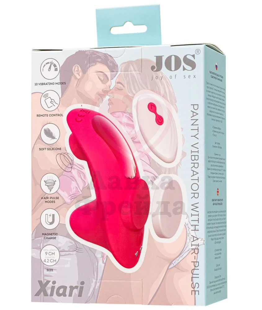Вакуумно-волновой стимулятор Jos Xiari с помощью магнита крепится на трусики, поэтому в любое время и в любом месте вы сможете с комфортом получать удовольствие. Управление происходит как кнопками, расположенными на корпусе игрушки, так и с помощью пульта дистанционного управления - вы можете отдать управление вашими оргазмами в руки партнёра.