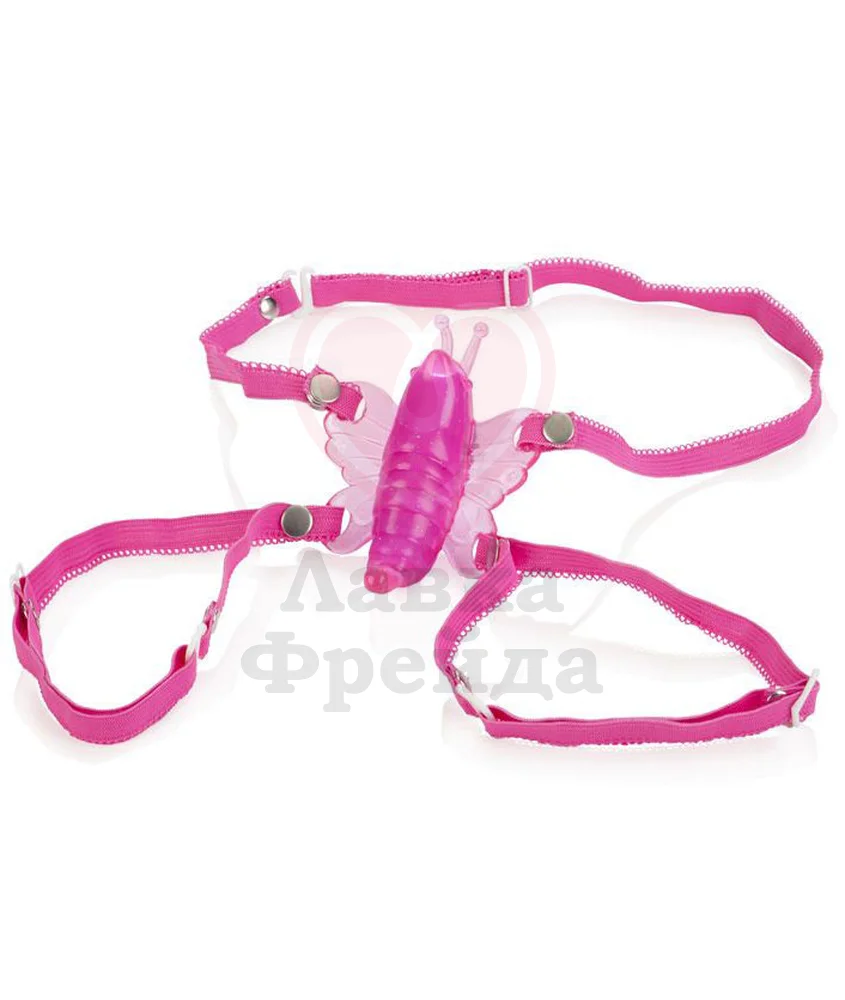 Изысканная форма бабочки с широкими и надежными крылышками прикроет интимную область с максимальным облеганием и сильным воздействием на клитор. Выпуклый носик бабочки и усики-антеннки, шевелящиеся в процессе, будут без конца дразнить клитор, создавая неповторимые чувства. С внутренней стороны тело бабочки покрыто сильным рельефом, который стимулирует половые губы. А изогнутый хвостик мягко воздействует на область ануса. Зафиксировать игрушку легко с помощью регулируемых ремешков на талию и бедра. Если нужно, то они полностью отсоединяются от аксессуара.