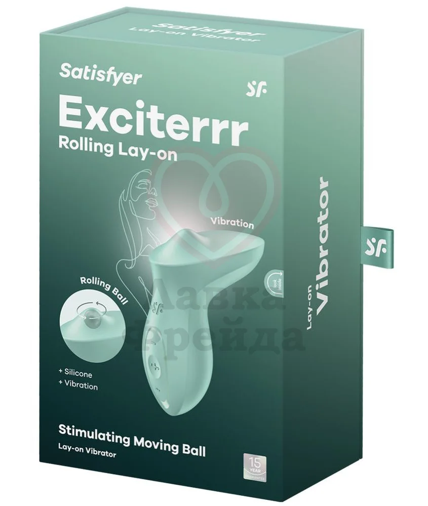 Вибратор Satisfyer Exciterrr изготовлен из медицинского силикона мятного цвета, обладающего нежной шелковистой текстурой. Устройство стимулирует клитор 10 вибро-режимами и 13 паттернами движений шарика, который на ощупь напоминает твёрдый палец, деликатно воздействующий на эрогенную зону. Обе функции можно включать по отдельности или одновременно - за их работу отвечают две независимых друг от друга движка.