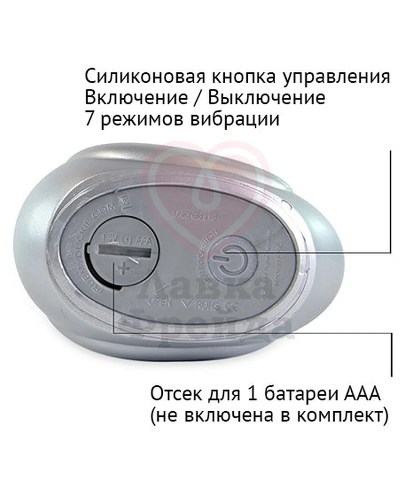 7 режимов вибрации переключаются силиконовой кнопкой на донышке. Для работы необходима 1 батарейка типа AAA, которая не входит в набор. Виброуточка I Rub My Duckie Silver может стать оригинальным подарком с юмором.