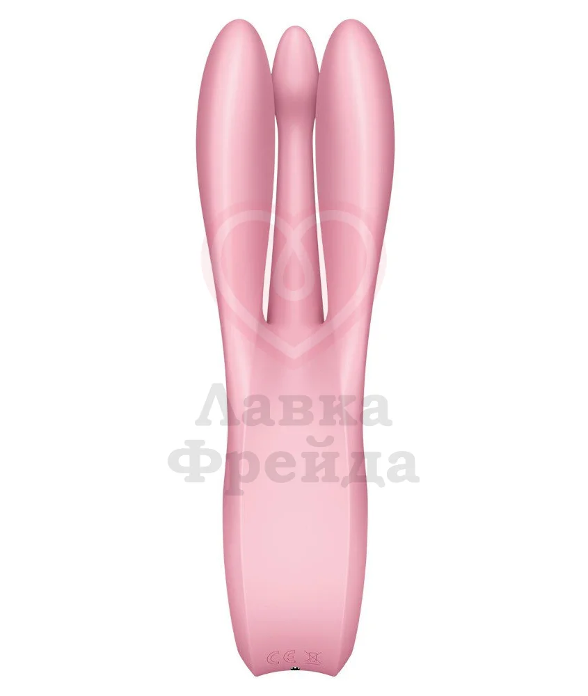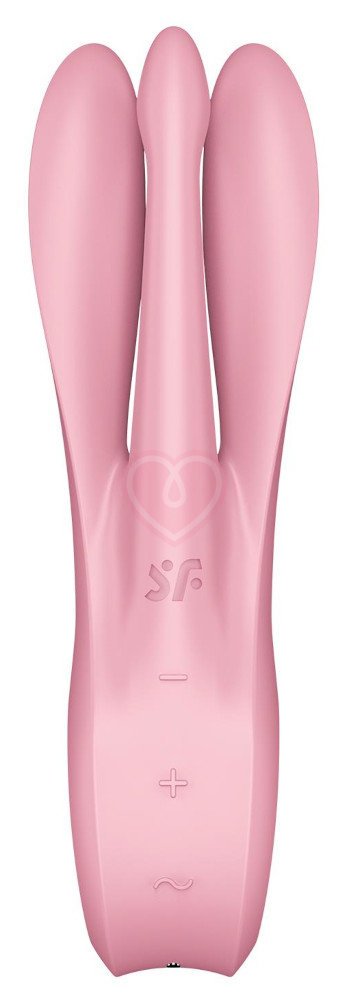 Необычный вибратор Satisfyer Threesome 1 обладает целыми 3 кончиками для внешней стимуляции. Такая форма с гибким дизайном позволяет оказывать вибрацию сразу на несколько чувственных зон: средний кончик идеально создан для головки клитора, а два широких по бокам - для вульвы.