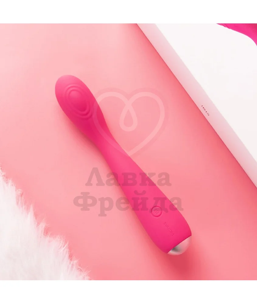 Svakom Iris – вибратор со знакомым и выверенным дизайном, напоминающим другие девайсы компании, такие как, к примеру, Cici. Головка-ложечка для клитора, удобный изгиб для стимуляции точки G, мягкий силикон, безопасность и качество — вот, что вас ждёт. Плюс несколько приятных нововведений. Айрис имеет хороший по мощности моторчик с 5 видами вибрации и 5 вариантами интенсивности. Переключаться между ними можно при помощи одной единственной кнопки: один клик отвечает за силу воздействия, двойной – за смену режима.