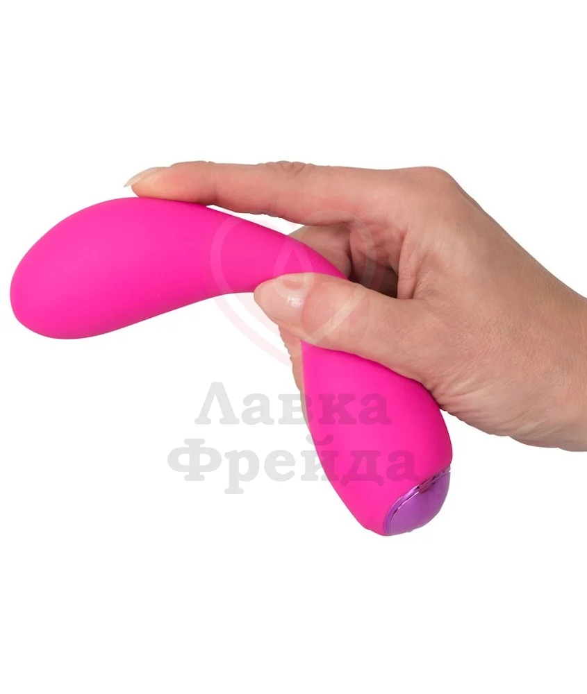 Небольшой и удобный вибратор Smile имеет необходимый изгиб и широкий кончик для эффективной стимуляции зоны G. Общая длина девайса 17 см, диаметр на кончике около 3,5 см, а на перешейке 2 см. Работает игрушка от 2 батареек AAA, которые приобретаются отдельно.