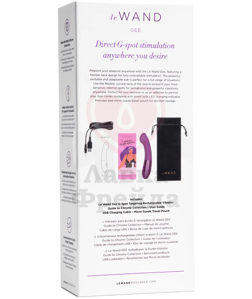 Вибратор Le Wand Gee - это элегантная и приятная игрушка для зоны G, выполненная в стильной коллекции Chrome, сочетающей в себе мягкость силикона и блеск металла. Вибратор обладает компактными размерами - с нежным кончиком длиной 8 см и максимальным диаметром до 3,6 см. Такая игрушка отлично подойдет для новичков: плавный изгиб, гибкость материала и потрясающая вибрация - идеальная комбинация для максимально удобной и комфортной стимуляции точки G.