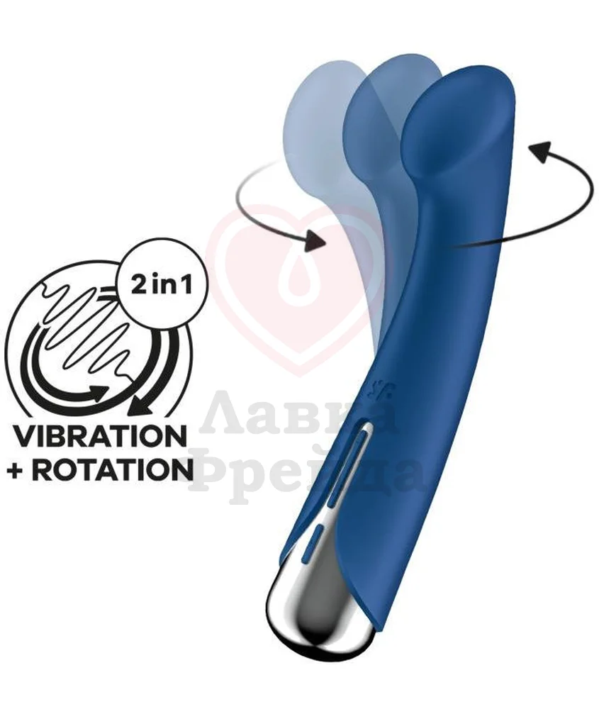 Вибратор Satisfyer Spinning G-Spot 1 имеет скошенный скругленный кончик и идеальный изгиб, за счет которых эффективно стимулируется передняя стенка вагины и чувствительная зона G. Удовольствие усиливают 12 уровней вибрации различной интенсивности и 5 режимов ротации, управляемых кнопками на корпусе: