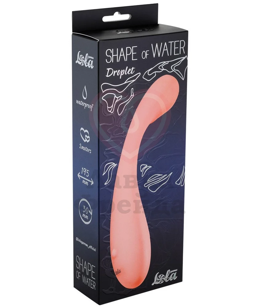 Вибратор Shape of Water Droplet имеет схожесть с каплями воды — большой и маленькой, соединенных вместе. Он безумно гибкий, как речной поток, а ещё супер шелковистый на ощупь, благодаря особому способу нанесения материала — при помощи жидкого силикона — никаких лишних стыков на игрушке нет, а кнопка тоже прячется под нежным персиковым покрытием. Медицинский силикон — безопасный и гипоаллергенный материал, который можно совмещать с лубрикантами только на водной основе.