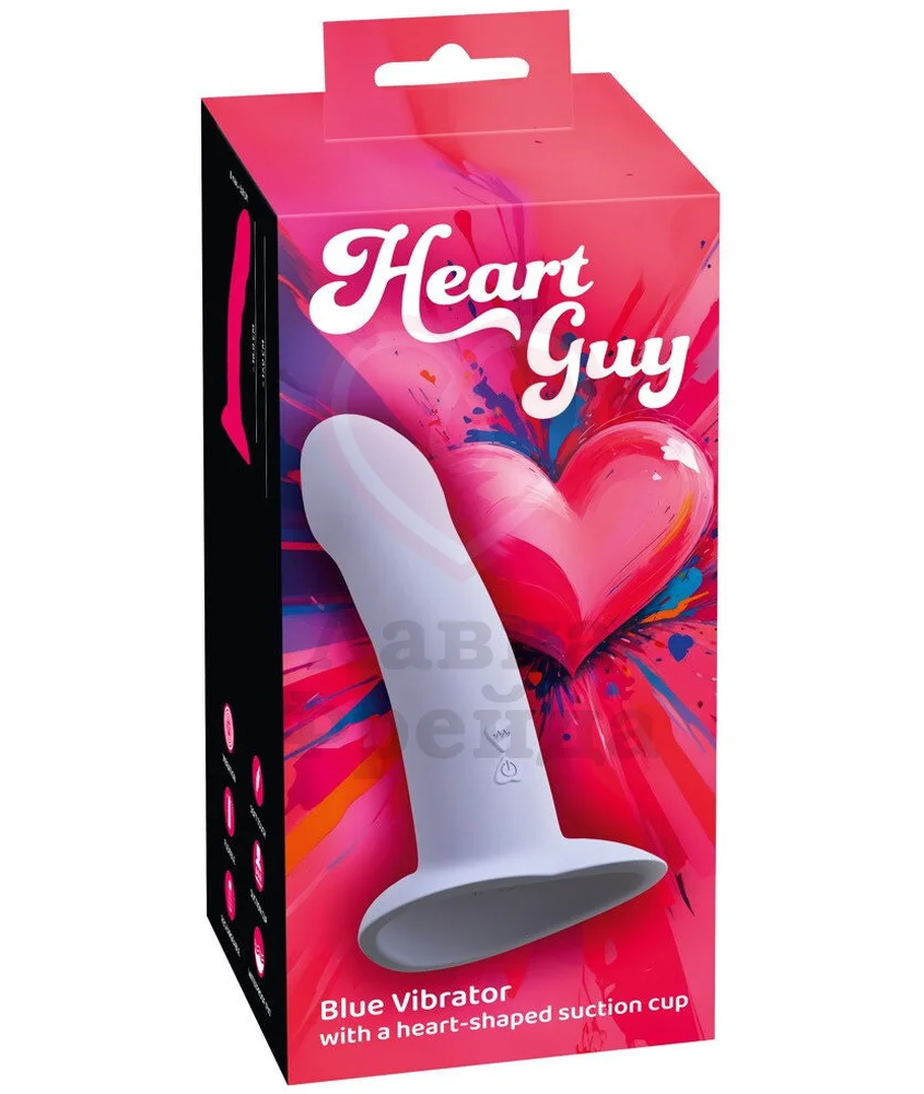 Нежно-голубой вибратор Heart Guy имеет в основании присоску в виде сердечка, которую можно закрепить практически на любой плоской поверхности, например, на плитке в ванной. Гладкий ствол с объёмной головкой хорошо гнётся, подстраиваясь под индивидуальные изгибы тела. Мощный мотор, перезаряжаемый через USB, отвечает за работу 10 вибро-режимов разной интенсивности, переключаемых одним нажатием кнопки.