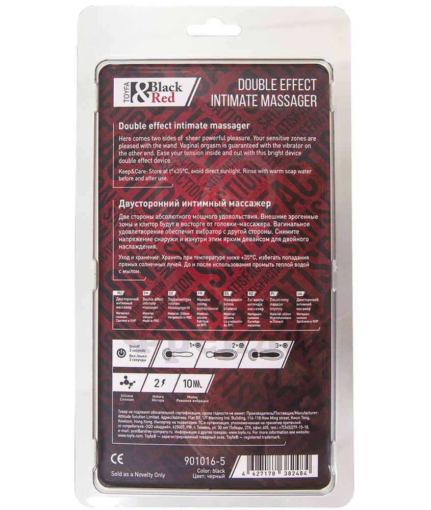 Двусторонний массажёр Black Red by Toyfa имеет чёрную бархатистую головку с silk-покрытием, которое будет скользить по клитору и области половых губ, доставляя удовольствие 10 режимами вибрации. Вторая часть - ярко-красный классический вибратор, предназначенный для стимуляции внутренних эрогенных зон.