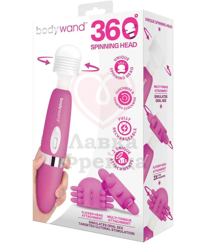 Вибратор BodyWand имеет вращающуюся головку, которая крутится на 360 градусов, эффективно стимулируя внешние эрогенные зоны - соски, клитор, область половых губ. Скорость вращения регулируется кнопкой на корпусе игрушке. Также в комплекте есть две насадки с нежными лепестками, имитирующими оральные ласки, что усиливает удовольствие от игры.
