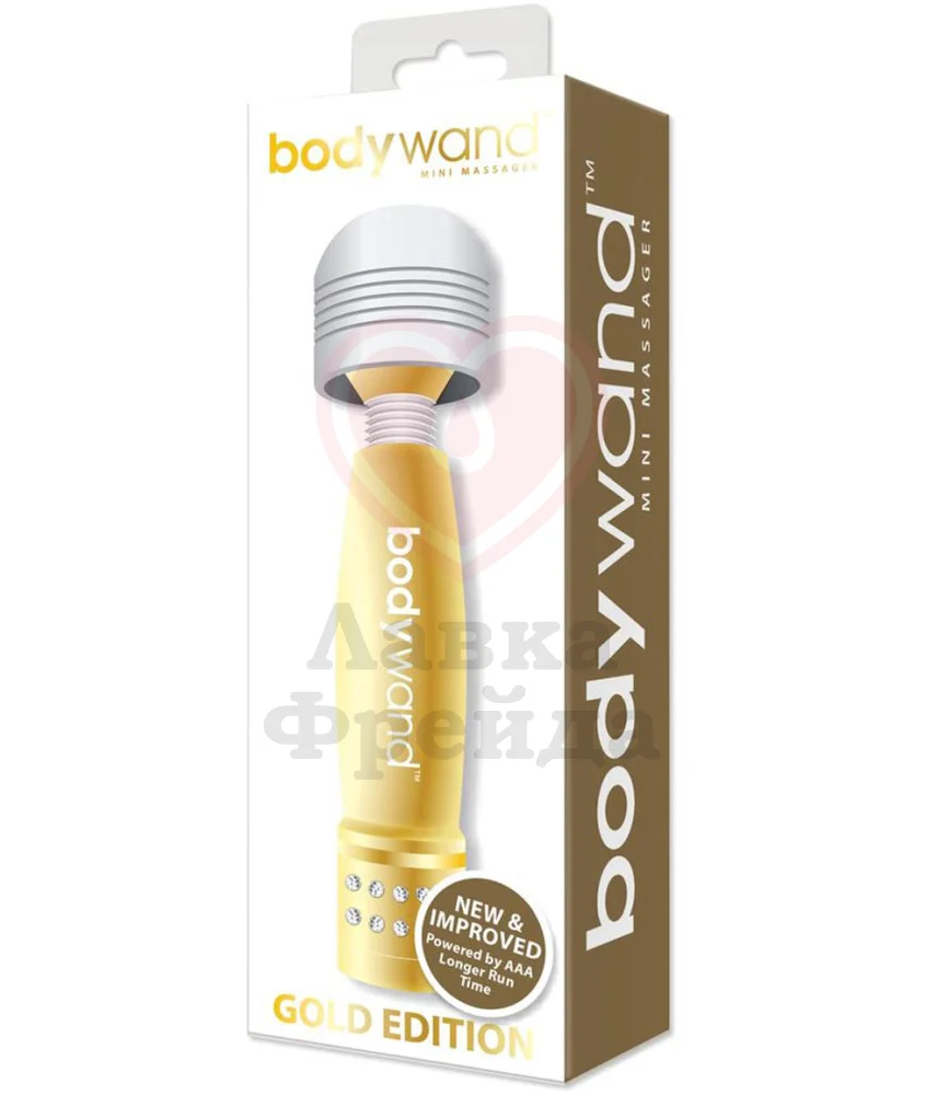 Изящный вибратор BodyWand Gold Edition можно использовать в качестве массажера спины, шеи, плеч и ног или стимулировать им внешние эрогенные зоны - соски, клитор и область половых губ. Аксессуар украшен россыпью сверкающих кристаллов. Девайс выполнен из тактильно приятного, качественного материала, который можно использовать с любыми лубрикантами - на водной, силиконовой, масляной или гибридной основе. Работает от одной батарейки типа AAA. Очищать можно специализированным антибактериальным средством для игрушек, или аккуратно мыть небольшим количеством воды и мыла.
