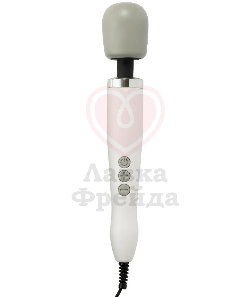 Классические массажёры Doxy имеют оригинальную головку серого цвета и отличаются цветом корпусов - эта модель, к примеру, белая. Doxy работает от розетки, в комплект входят вилки для всех стран, поэтому не нужно мучиться с поисками адаптера.