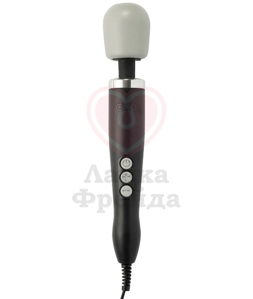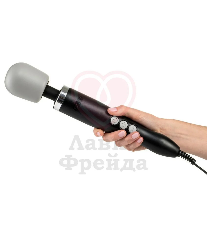 Классические массажёры Doxy имеют оригинальную головку серого цвета и отличаются цветом корпусов - эта модель, к примеру, чёрная. Doxy работает от розетки, в комплект входят вилки для всех стран, поэтому не нужно мучиться с поисками адаптера.
