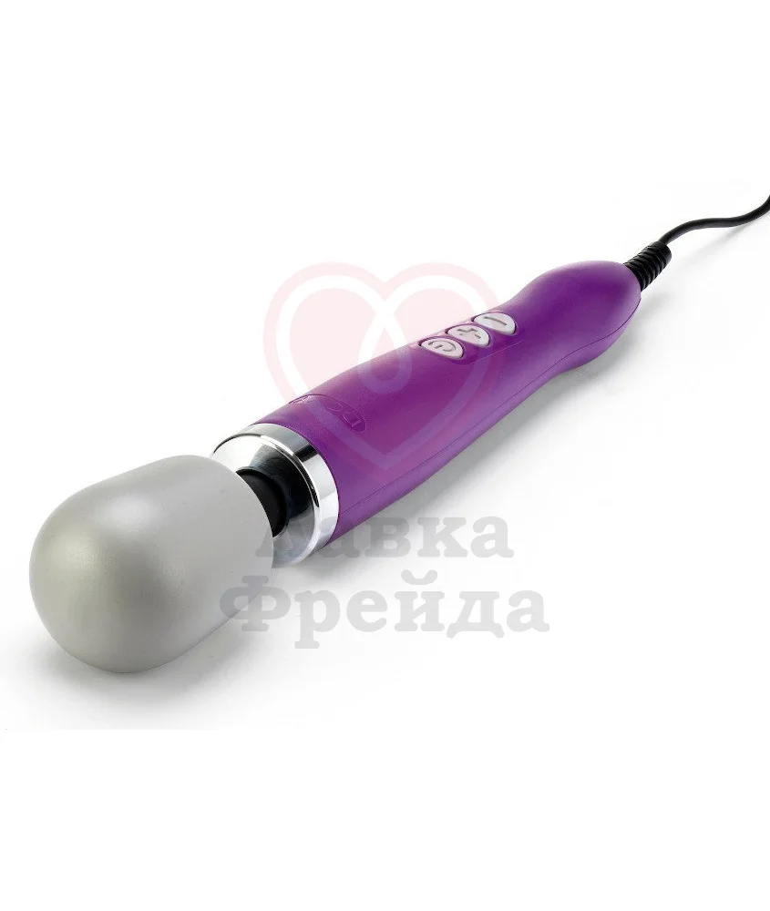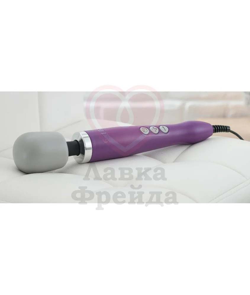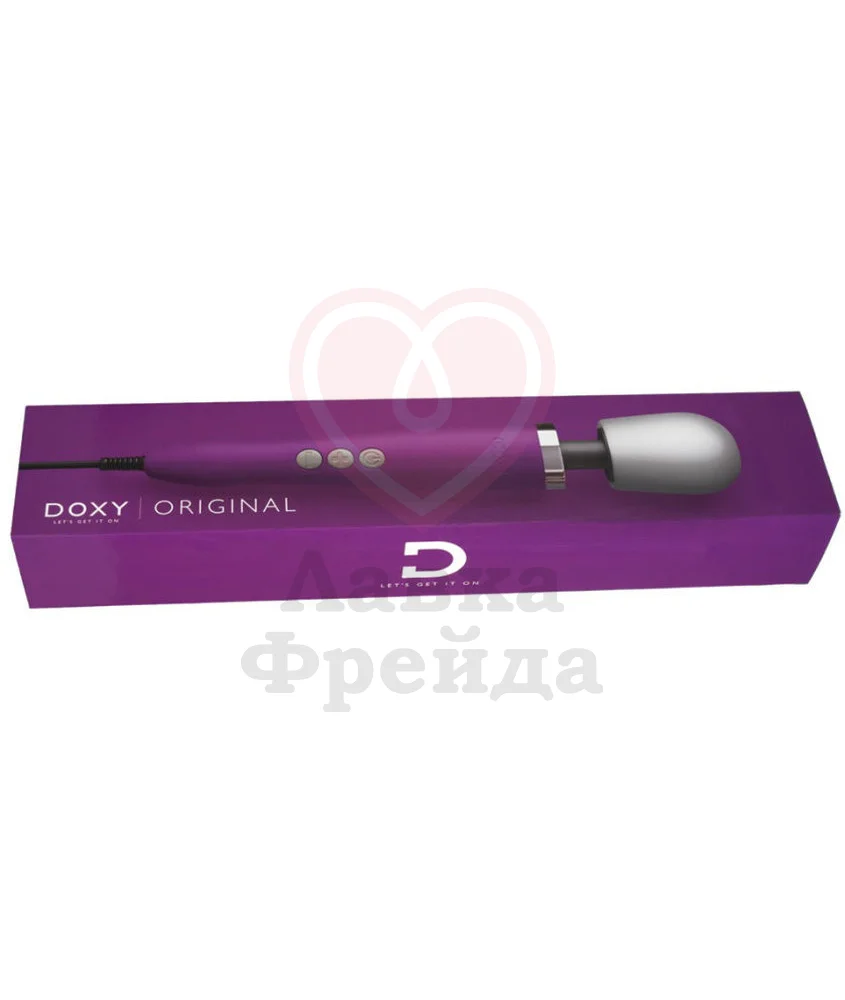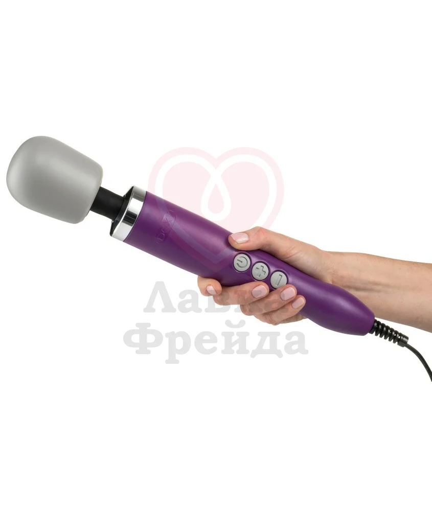 Классические массажёры Doxy имеют оригинальную головку серого цвета и отличаются цветом корпусов - эта модель, к примеру, фиолетовая. Doxy работает от розетки, в комплект входят вилки для всех стран, поэтому не нужно мучиться с поисками адаптера.