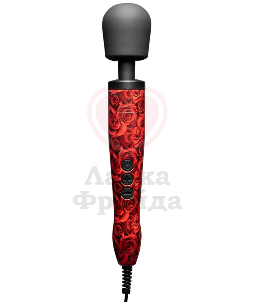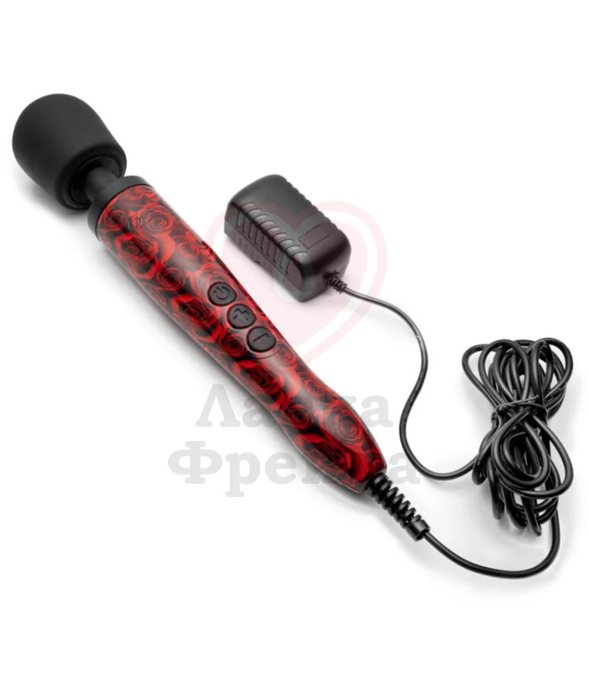 Этот массажёр Doxy имеет головку черного цвета, а корпус украшен красными розами. Doxy работает от розетки, в комплект входят вилки для всех стран, поэтому не нужно мучиться с поисками адаптера.