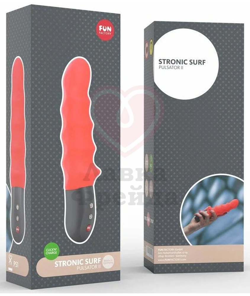 Stronic Surf входит в обновлённую линейку строников второго поколения Fun Factory Pulsator II. Это особый тип секс-игрушек, которые используют не привычную всем вибрацию, а пульсацию — активные поступательные движения, имитирующие ощущения от проникающего секса.