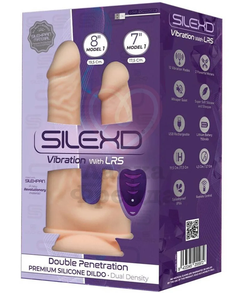 Вибратор-реалистик SileXD имеет два ствола для вагинальной и анальной стимуляции. Вагинальный отросток длиной 19 см и диаметром 4,5 см. Анальный ствол - 17 см длиной и 3,7 см в диаметре. Игрушка имеет защиту от брызг, поэтому её можно очищать как небольшим количеством тёплой воды с мылом, так и специальным спреем.