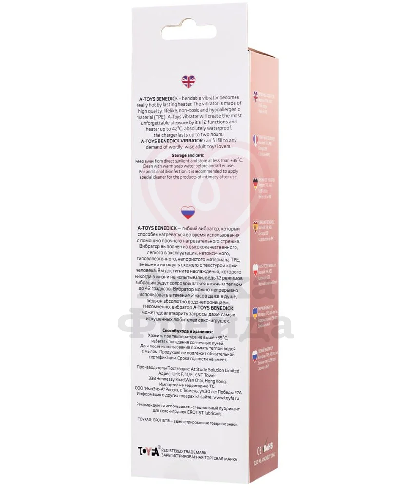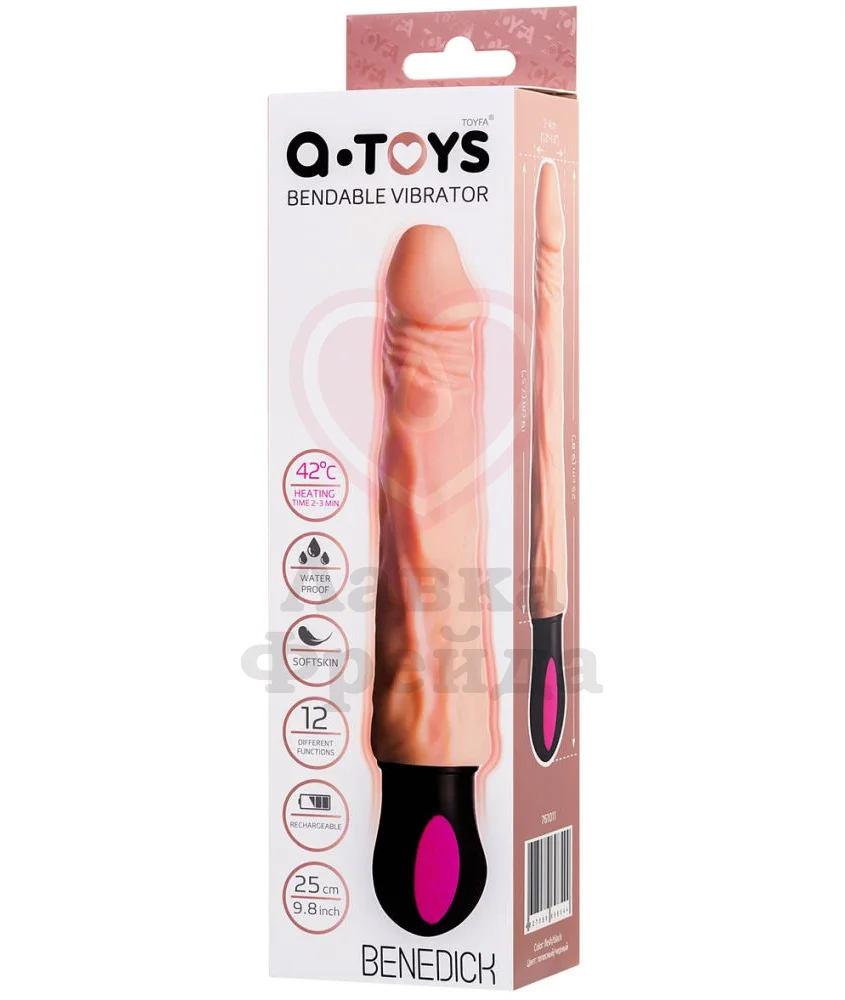 Реалистичный вибратор A-Toys by Toyfa Benedick имеет мощный мотор, перезаряжаемый через USB, который обеспечивает работу 12 режимов вибрации и функции нагрева до 42 градусов всего за 2-3 минуты. При полной подзарядке вы получите до 2-х часов непрерывной работы девайса.