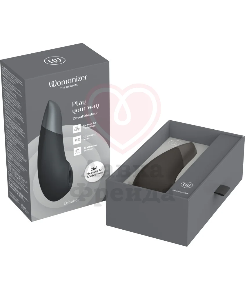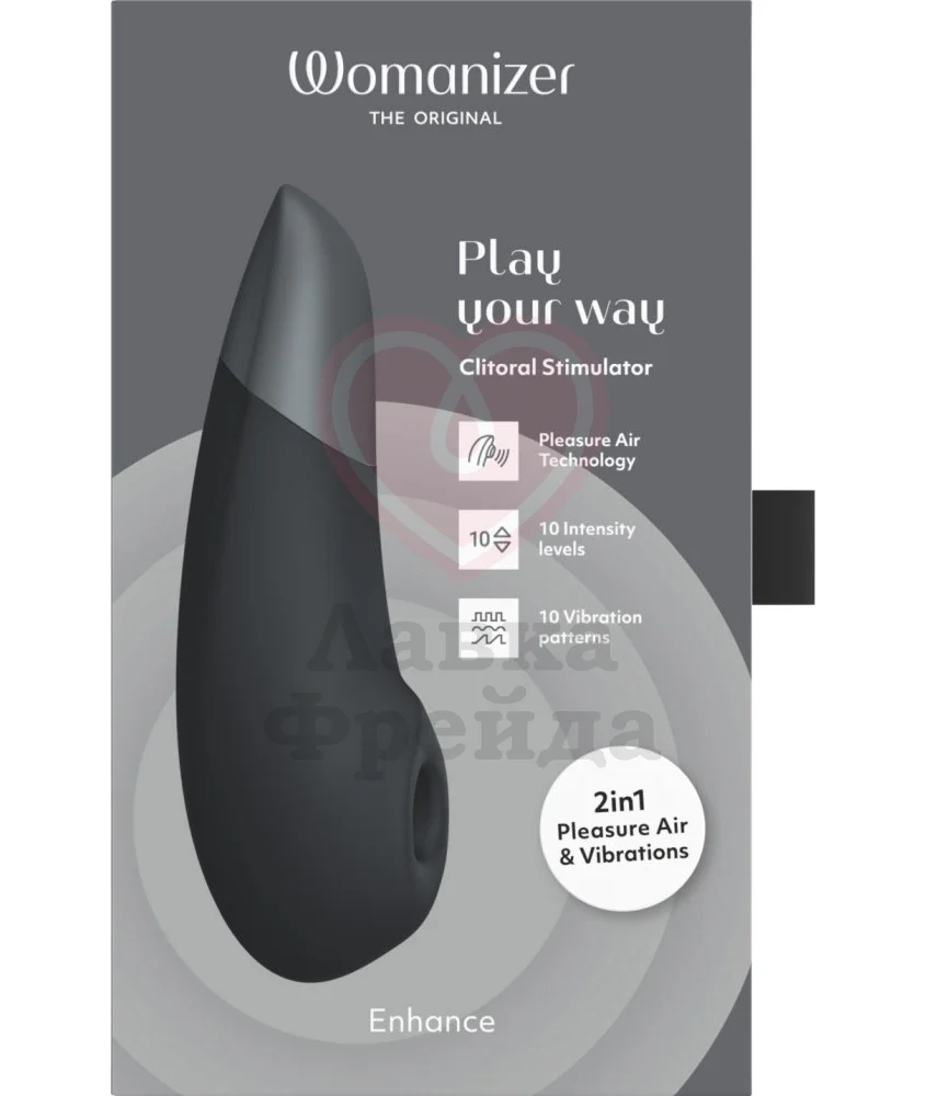 Womanizer Enhance сочетает в себе вакуумную стимуляцию и вибрацию для усиления ощущений. Больше разнообразия - ярче впечатления! 2 мощных моторчика обеспечивают раздельное управление функциями: