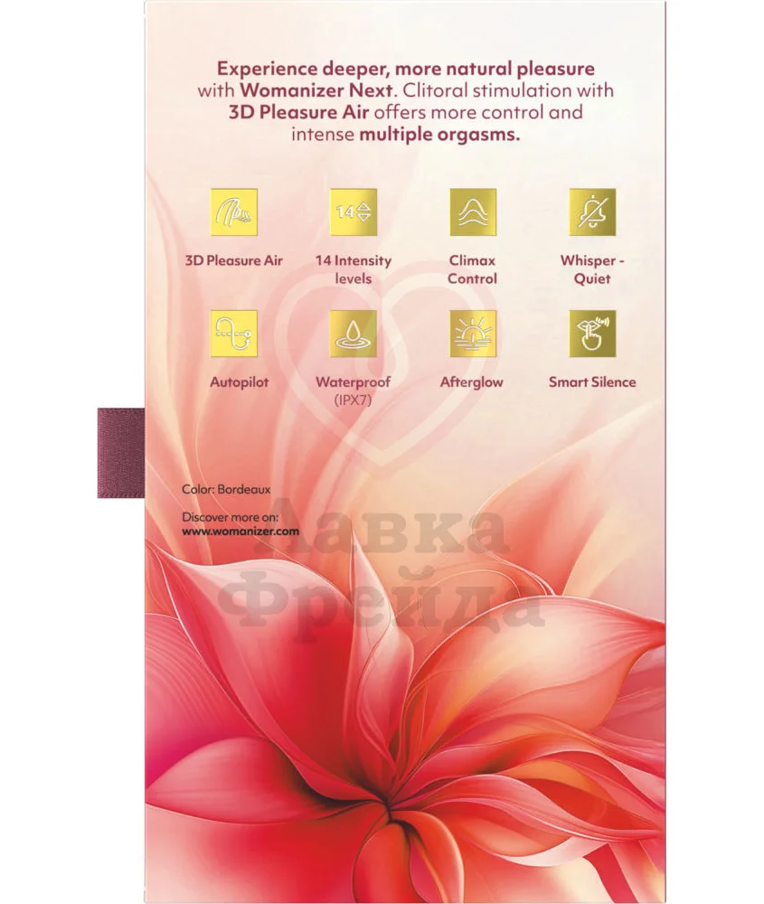 Встречайте новое поколение вакуумных стимуляторов! Womanizer снова совершили маленькую революцию в мире женского удовольствия и создали девайс с говорящим именем Next. Он оснащен технологией волновой стимуляции следующего поколения – 3D Pleasure Air. Воздушные потоки будут ласкать более мощно, объемно и ярко, приводя к оргазмам так быстро и часто, как вы захотите.