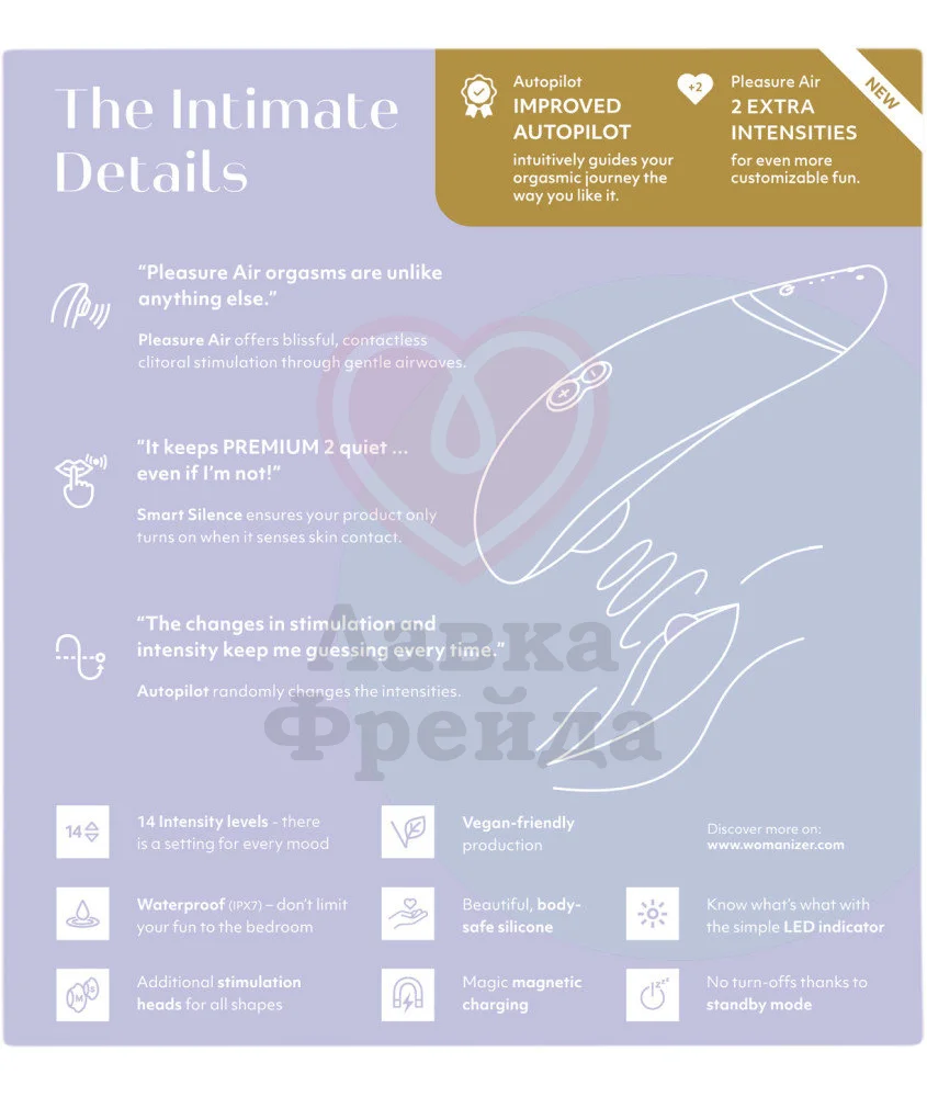 Вакуумным стимулятор Womanizer Premium 2 - это обновленная версия самой популярной бесконтактной игрушки для женского удовольствия. Больше разнообразия - ярче впечатления!