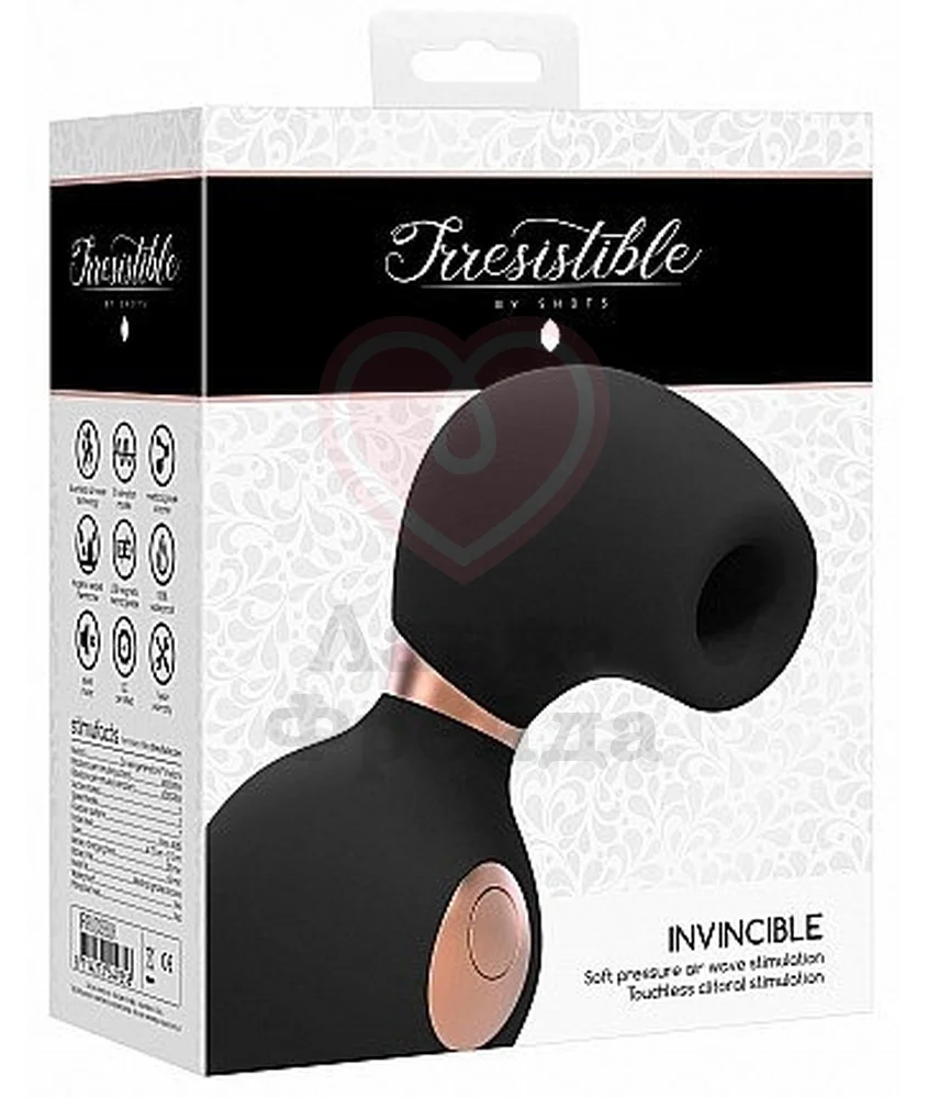 Ощутите самое нежное удовольствие с коллекцией Irresistible! Invincible сочетает сразу две игрушки в одной — вакуумный клиторальный стимулятор и внешний вибратор. Он не зря похож на элегантные песочные часы, каждая половина функциональна по-своему: в верхней части находится головка для вакуумного воздействия на клитора, а нижняя часть превращается в мощный вибратор, которым удобно дразнить самые чувствительные зоны на теле. Стимулятор покрыт матовым качественным силиконом и очень приятен на ощупь.