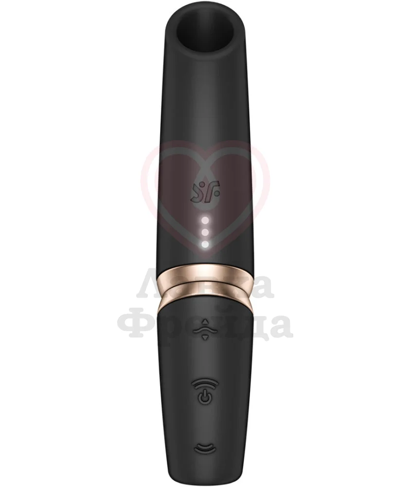 Вакуумно-волновой стимулятор Perfect Kiss внешне похож на губную помаду, поэтому совершенно незаметно для других вы можете носить его с собой в сумочке. Миниатюрная игрушка, представленная в лаконичном чёрном цвете, имеет мощный движок, который отвечает за 30 режимов воздушной пульсации клитора.