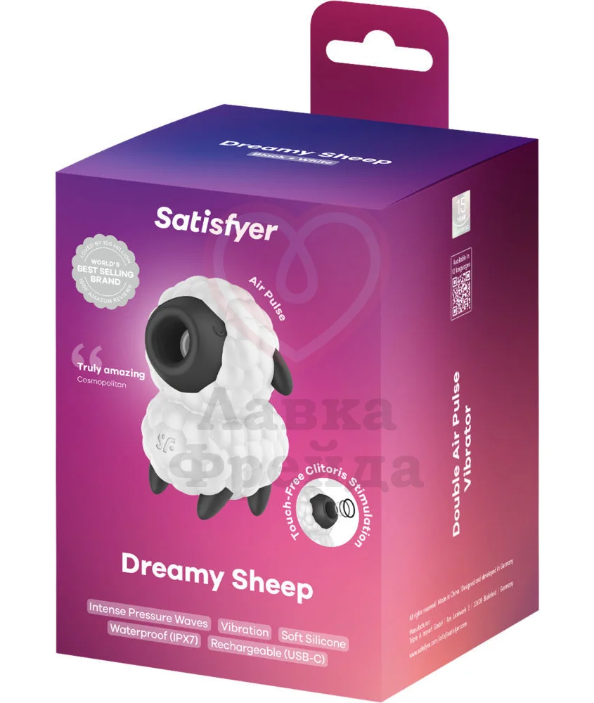Satisfyer Dreamy Sheep - вакуумно-волновой стимулятор, выполненный в форме овечки. Конструкция включает два независимых друг от друга мотора, отвечающих за работу 11 паттернов вакуумно-волновой стимуляции и 13 режимов вибрации - вы можете включать функции по отдельности или совмещать режимы для создания индивидуальных сценариев.