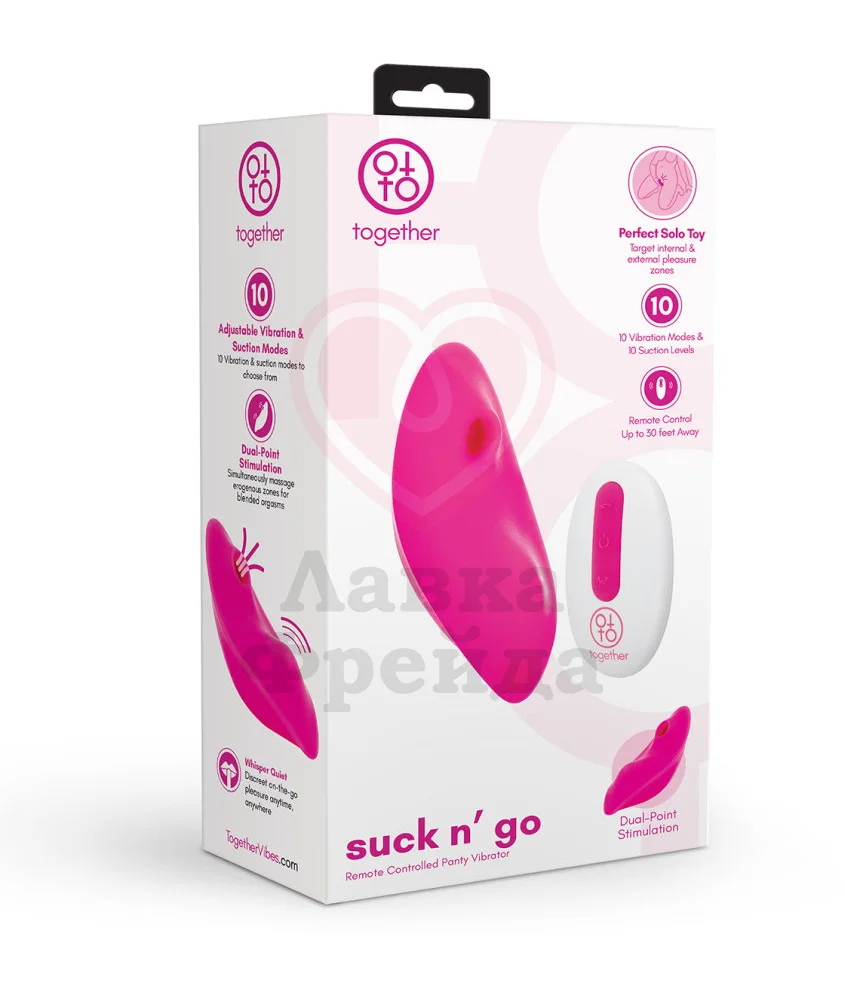 Стимулятор Suck n'Go ласкает клитор 10 нежнейшими режимами всасывания, удовольствие от которых дополнительно усиливают 10 вибро-режимов разной интенсивности. Управление происходит кнопкой на корпусе игрушке, либо пультом ДУ, с радиусом действия до 9 метров.
