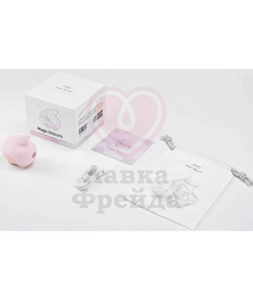 Клиторальный вибратор Magic Motion Unicorn сделан в виде нежно-розового единорога, который в считанные минуты доведёт до оргазма. Имеет 7 режимов стимуляции клитора нежными воздушными потоками и 7 вибро-режимов. Вибрацию и волновую стимуляцию можно включать как вместе, так и по отдельности. Полностью заряженная через USB игрушка обеспечит до 2 часов непрерывной работы.