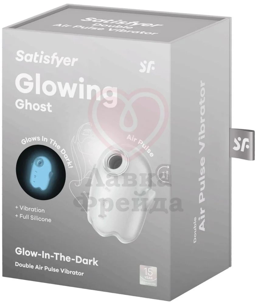 Стимулятор Satisfyer Glowing Ghost - креативная секс-игрушка, светящаяся в темноте. Аксессуар стимулирует клитор волнами давления и вибрации, которые можно включать вместе или по отдельности. Два независимых друг от друга мотора отвечают за работу 12 вибро-режимов и 11 уровней интенсивности давления.