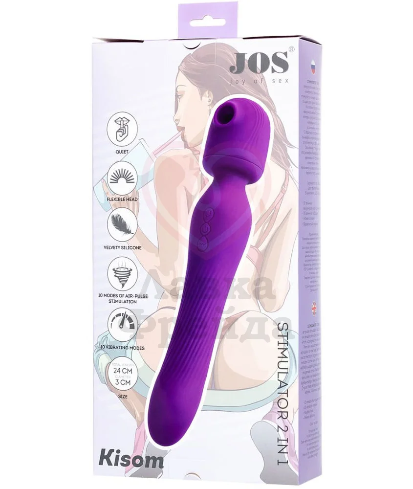 Вибратор Jos Kisom - двусторонняя игрушка, которая в считанные минуты доведёт вас до яркого, взрывного оргазма. Первая часть аксессуара - это крупная гибкая головка, дополненная с одной стороны маленьким пульсирующим шариком, а с другой вакуумно-волновым стимулятором. Обе стороны головки идеально подходят для максимально эффективной стимуляции клитора легким постукиванием и нежными воздушными импульсами.